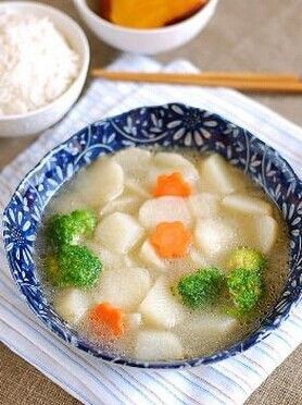 材料 山藥(我用的水山藥,就是脆的那種,喜歡面的口感,可以改用綿山藥),雞湯,胡蘿卜,西蘭花